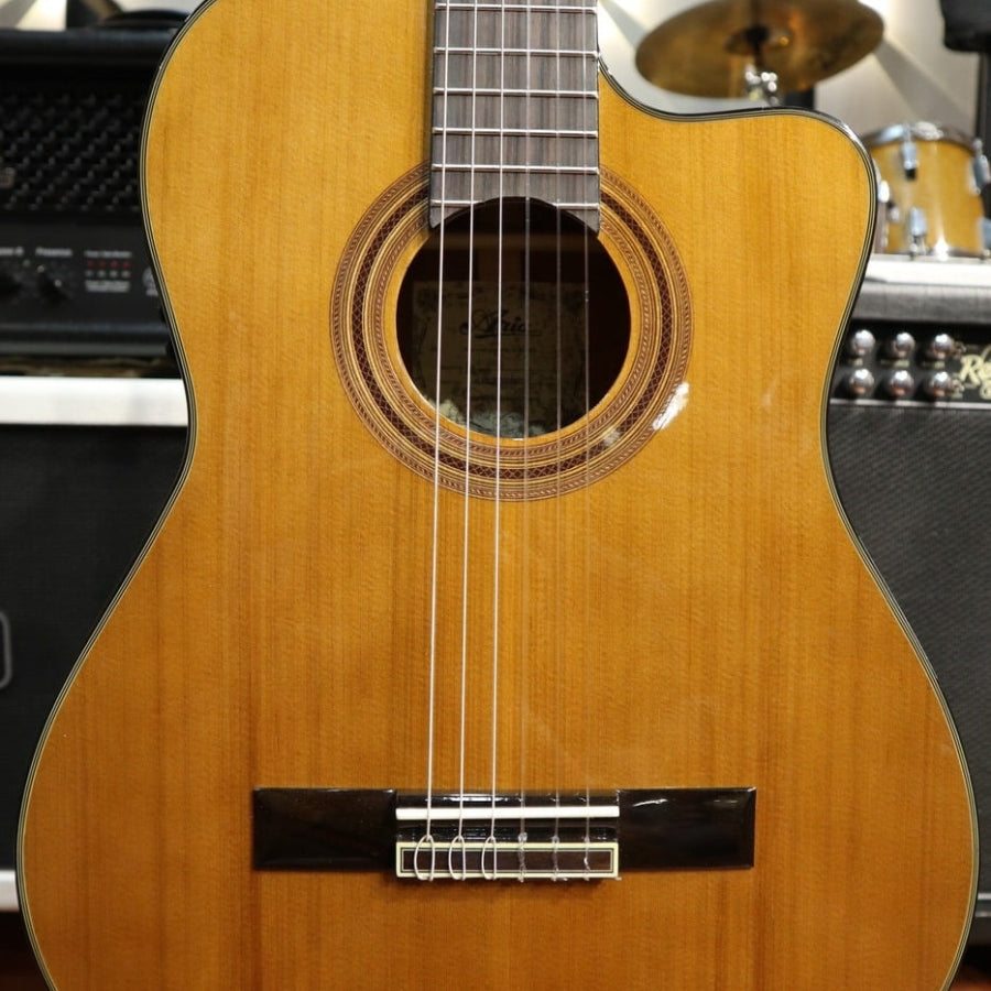 This classical guitar features a solid cedar top paired with mahogany back and sides for a rich, warm tone that rings out beautifully. The built-in Aria AEQ-4 preamp gives you total control of your sound with its four-band EQ and onboard tuner. It’s a great option for players who want a natural acoustic feel with the flexibility of plugging in when needed.