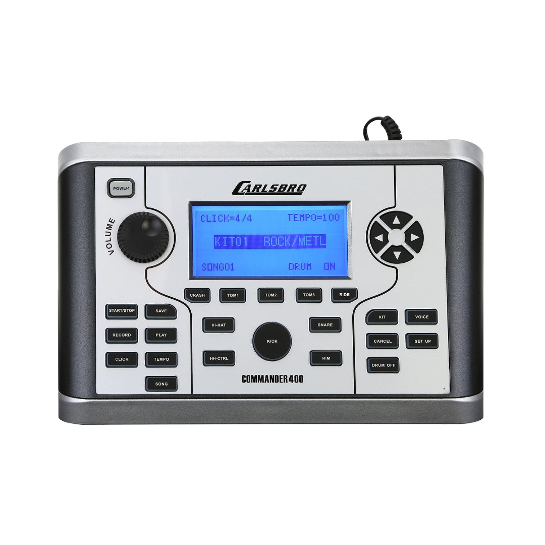 The CSD400 is built around the powerful Commander 400 sound module, packed with 29 preset kits, 12 user kits, and 358 high-quality sounds. Each pad uses mesh heads for a more natural, acoustic-like feel. With dual-zone snare and tom pads, cymbals with choke features, and flexible sound settings like EQ and reverb, it gives you total control over your tone. USB MIDI, line outs, and recording functions make it great for practice, performance, or studio work.
