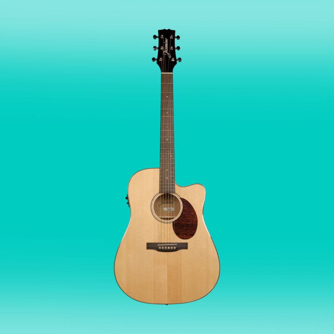 The Jasmine JD-37CE Dreadnought Acoustic Electric Guitar (Natural) is made for players who want rich sound, smooth playability, and stylish looks—all in one affordable package. With its bright, full tone and sleek cutaway design, it’s perfect whether you’re jamming at home or performing on stage. Plug it in or play it acoustic—either way, this guitar delivers.