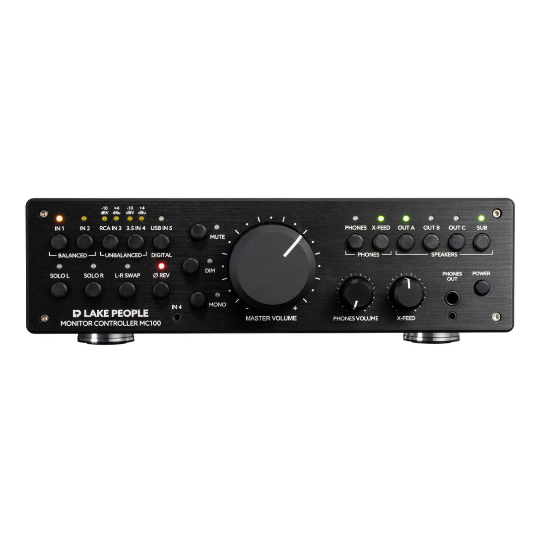 The Lake People MC100 Monitor Controller is your go-to solution for taking full command of your studio sound. Whether you're switching between multiple sets of speakers or dialing in your headphone mix, the MC100 makes it effortless. With simple controls, rugged build quality, and smooth operation, it brings pro-level sound control to your fingertips—no technical know-how required.
