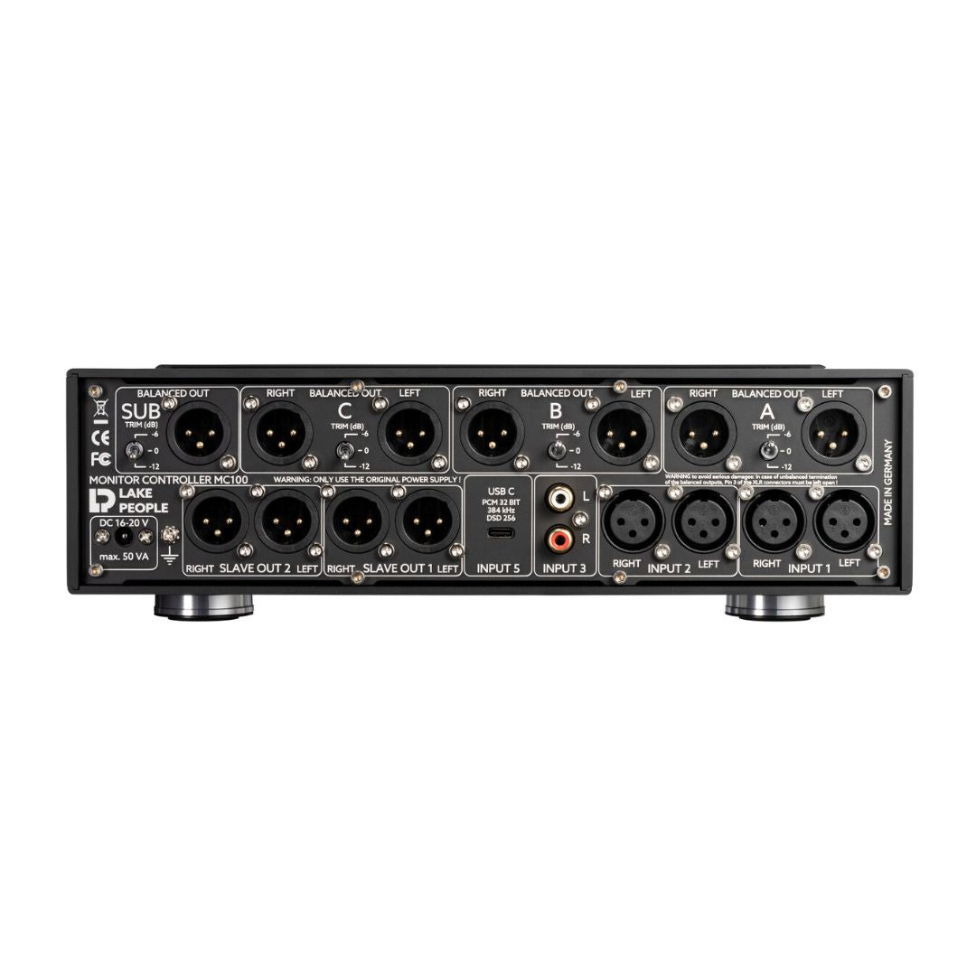 The Lake People MC100 PRO Monitor Controller is the perfect tool for getting the most out of your audio setup. Whether you're working in a studio or just love high-quality sound, this desktop unit lets you switch between different speakers, adjust volume smoothly, and even plug in headphones with extra features for a more natural feel. It's built to deliver clean, clear audio and give you total control—without being complicated.