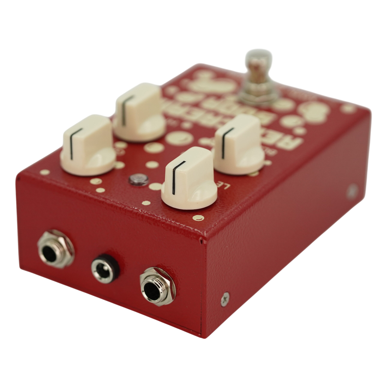The Red Cream Soda features a unique drive circuit and sonic characteristics, offering everything from a clean boost to hard overdrive, along with a versatile treble cut. Imagine if a Centaur and a Tube Screamer had a baby; that’s the best way to describe this pedal. It utilizes an unconventional CMOS inverter for overdrive, incorporates BAS33 diodes in an asymmetrical clipping arrangement, and includes a dry signal blend to help shape its overdrive and boost characteristics.