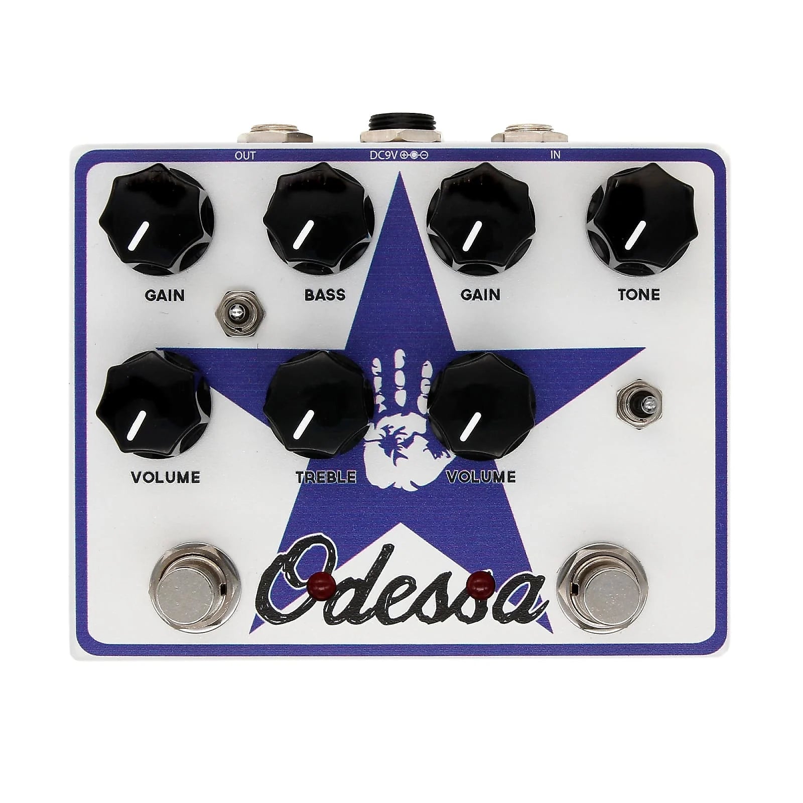 The Odessa dual-channel overdrive features our award winning Rook on the left side, as well as our lower gain Magpie on the right side. Both channels are completely independent and can be stacked for excellent high gain tones (Magpie into Rook). Each channel sports a 3-setting gain selector toggle, giving you a ton of tonal options.
