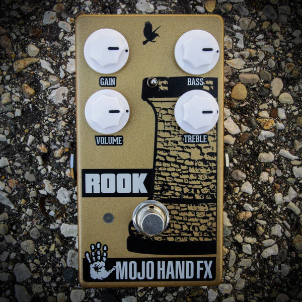 Classic overdrive paired with a powerful EQ section. Even with the gain dimed, the Rook maintains astonishing note articulation and chord clarity, (think a highly tweakable Tube Scre@mer). If that’s not enough, the Rook is one of the most stack friendly drives on the market. Whether stacked with various overdrives, fuzzes, or muffs, it can make all of your other pedals sound even better!
