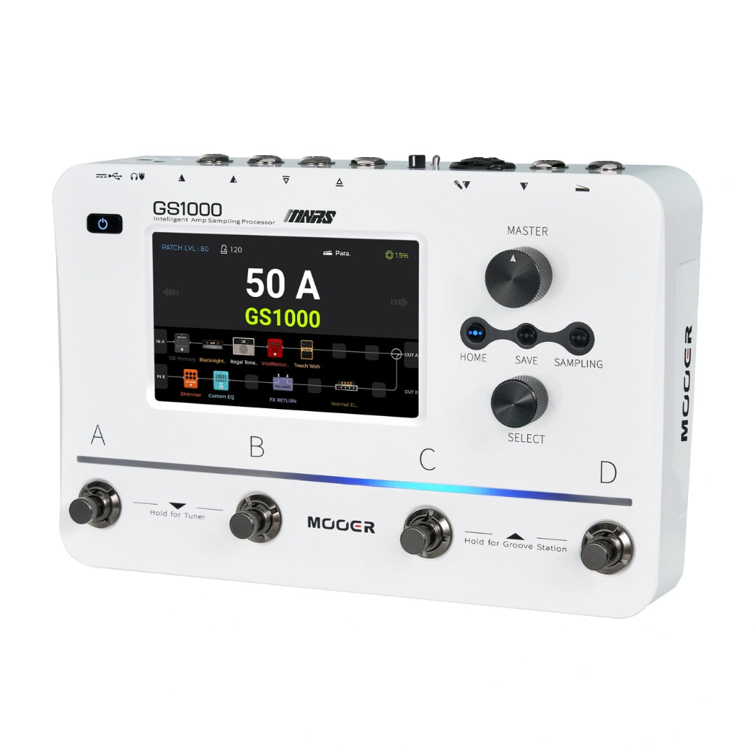 Powered by MOOER’s cutting-edge MNRS 2.0 technology, the GS1000 profiles distortion pedals, preamps, amps, and cabinets with studio-grade precision. It boasts over 350 built-in effects, a high-resolution touchscreen, and seamless dual-chain processing for complex signal chains. The Groove Station module adds a drum machine and looper for endless creative possibilities, while Bluetooth, MIDI, and USB connectivity make it perfect for both live and studio use. The GS1000 Li model features a rechargeable battery, delivering up to six hours of playtime for ultimate portability.