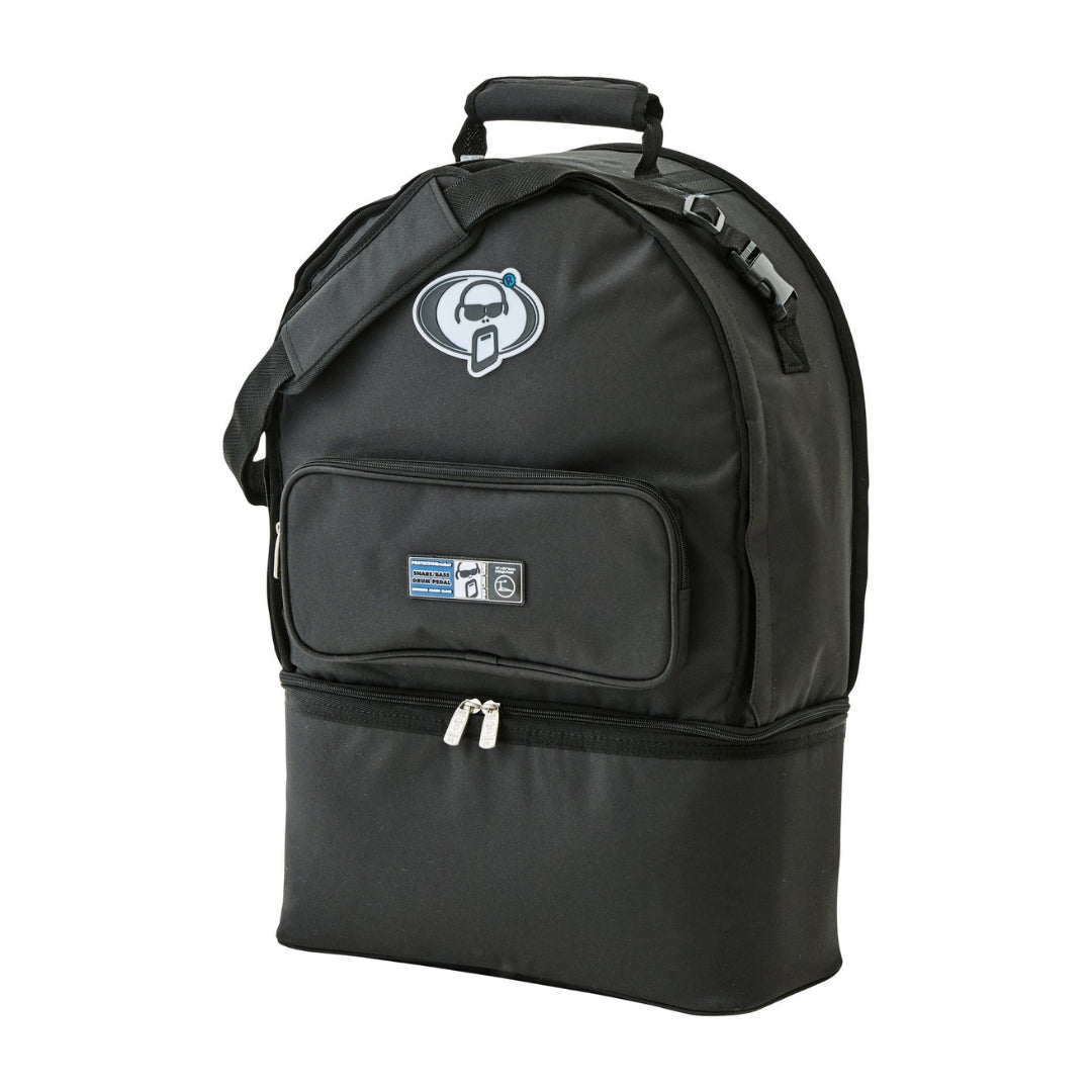 This case fits any 14” snare up to 7” deep, and includes a smart divider for storing extra drumheads. There’s even a zippered pocket perfect for small cymbals, snare wires, or tools. On the bottom, a built-in section holds your single or double pedal securely—it opens all the way around for quick access but stays attached so it’s never misplaced. With its tough build and backpack-style straps, it’s ready for the road.