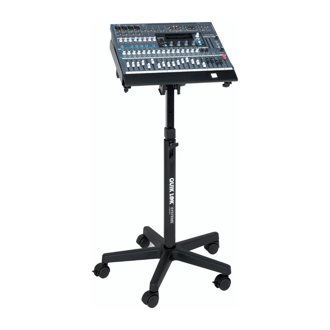 The Quik Lok QL-400 Mixer Stand is a must-have for anyone looking to organize their music equipment. Whether you're working from home or in a professional studio, this rolling stand keeps your gear secure and accessible. With adjustable height, width, and tilt, it offers the perfect fit for mixers, drum machines, and other devices. Plus, its smooth-rolling wheels make it easy to move around while keeping everything in place.
