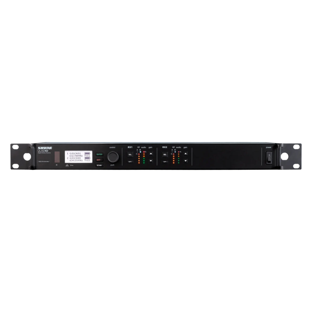 - Shure ULXD4D Dual-Channel Digital Wireless Receiver (J50A: 572 to 608 + 614 to 616 MHz)