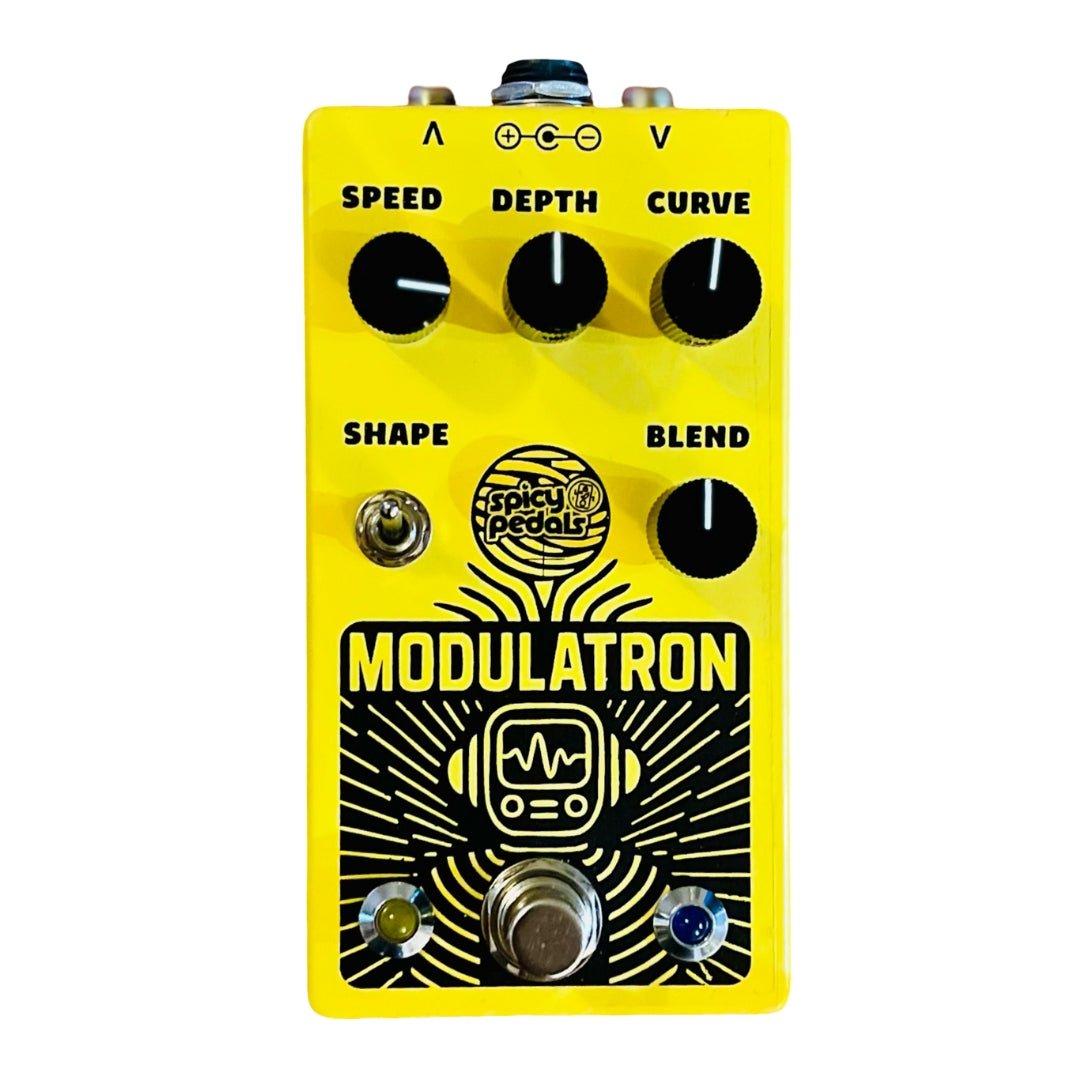 Meet the Modulatron – a chorus/vibrato pedal designed for players who love to tweak, blend, and warp their sound into modulation bliss. Built by hand in small batches by Spicy Pedals, the Modulatron combines vintage warmth with modern control. Whether you’re after classic ’80s chorus, seasick vibrato, or something in-between, this box gives you total control.