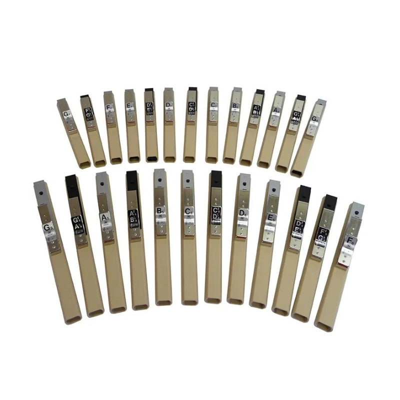 The Suzuki CM-25 Chimettes offer a bright, clear tone pitched an octave above traditional ToneChimes, making them perfect for layering with other instruments or starting your own hand chime group. Each chime is overtone-tuned and built with a strong ABS handle that’s balanced and padded to feel like a real handbell. Whether you're a teacher on a tight budget or a choir director looking to expand your sound, this set delivers quality and fun in one affordable package.