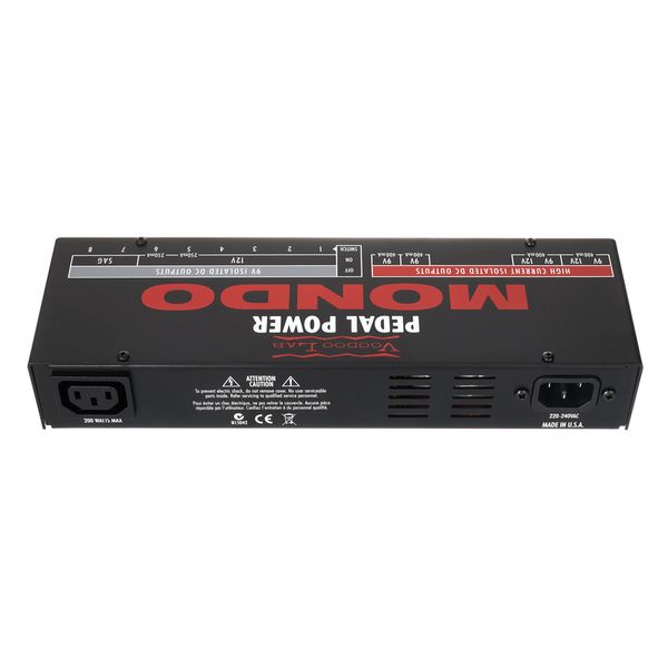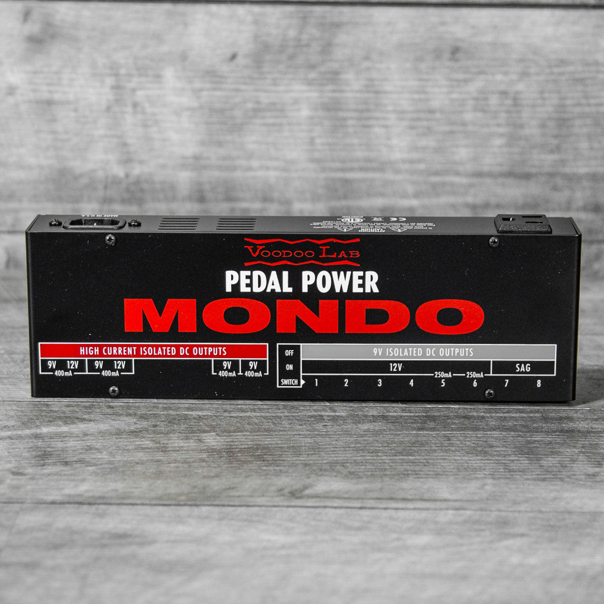 Pedal Power MONDO is a high-current capable power supply that can power the largest and most diverse pedalboards. From digital power-hungry effects like those from Strymon, Eventide, Line 6, TC Electronic, and more, plus compatibility with all standard 9-volt battery stompboxes, MONDO is perfect for large to gigantic pedalboards. Features 12 completely isolated, filtered, and regulated output sections that will keep your pedals dead quiet and free from high-frequency noise that occurs with digital “switching” power supplies.