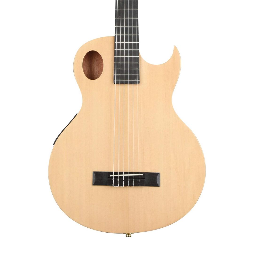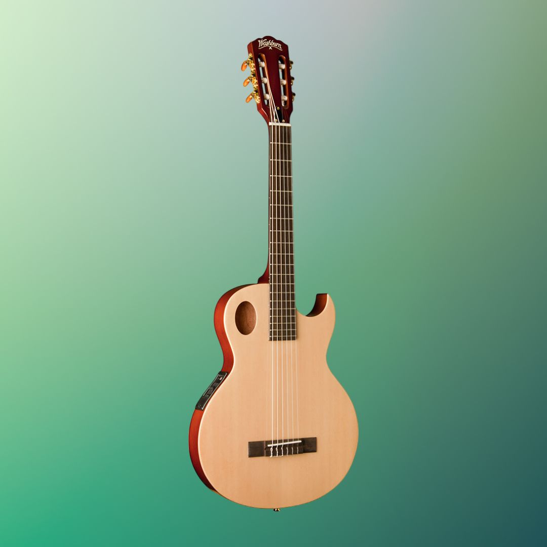 The Washburn EACT42S Festival Cutaway Classical Electric Guitar (Natural) is the perfect mix of classic nylon string tone and modern playability. Whether you're strumming by the campfire or performing on stage, this guitar gives you warm, rich sound and a sleek, comfortable feel. Its slimmer body and narrow neck make it easy for players used to steel-string guitars to jump into the world of nylon strings without missing a beat.